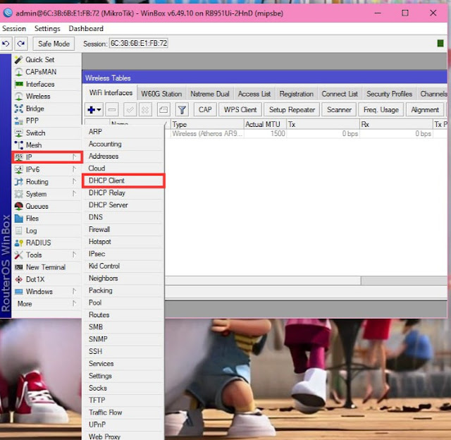 - Jika sudah masuk ke DHCP Client dengan cara pilih IP > DHCP Client.